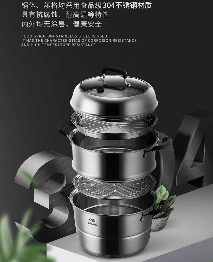 爱仕达不串味三层不锈钢复底蒸锅 28cm